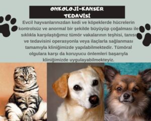 Çanakkale Kepez Boğazkent Veteriner Evcil hayvanlarınızdan kedi ve köpeklerde hücrelerin kontrolsüz ve anormal bir şekilde büyüyüp çoğalması ile sıklıkla karşılaştığımız tümör vakalarının teşhisi, tanısı ve tedavisini operasyonla veya ilaçlarla sağlanması tamamıyla kliniğimizde yapılabilmektedir. Tümöral olgulara karşı da koruyucu önlemleri başarıyla kliniğimizde uygulayabilmekteyiz.